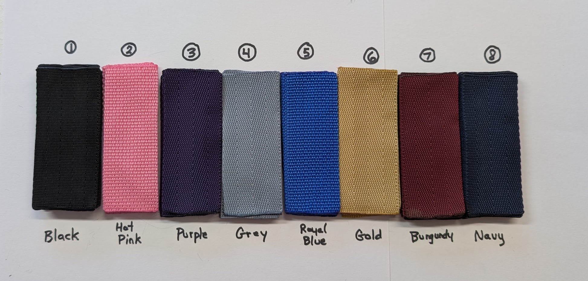 Royal Blue, Black, Navy, Pink, Burgundy, Grey, Gold, Purple, Navy with Grey& Green Stripe